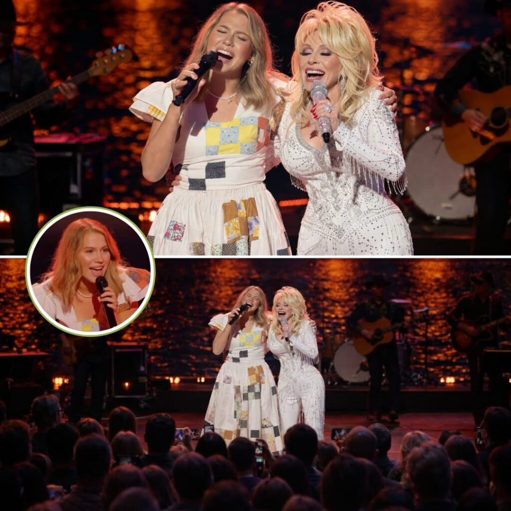 Dolly’s gaze softened, and she leaned slightly toward Hannah, a gesture of encouragement, of trust. There was no performance in it, only the simple honesty of two voices and two hearts converging. In that glance, in that tilt of a shoulder, the enormity of the moment was captured — not in applause, not in lights, but in the fragile intimacy of being seen.