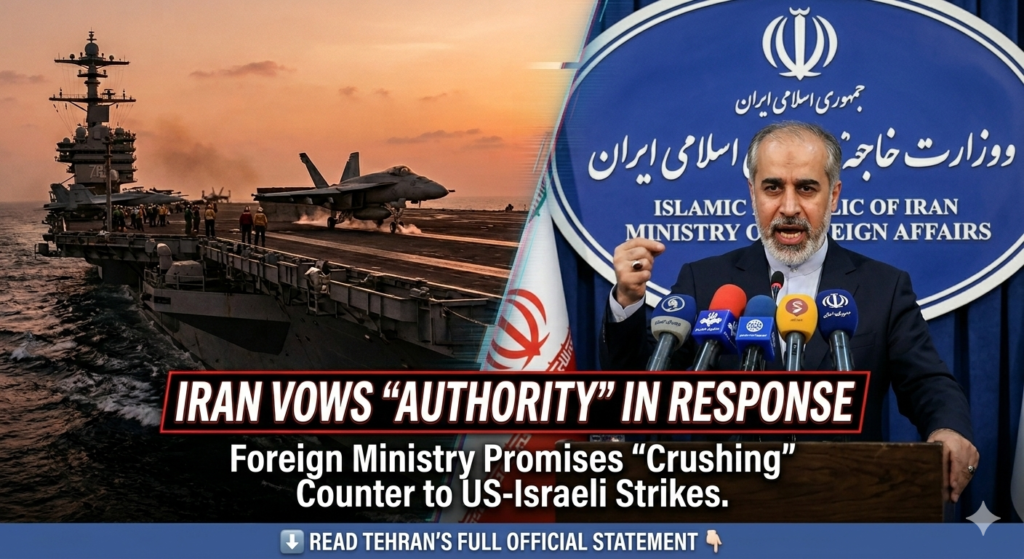 [TEHRAN, February 28, 2026] — Breaking its silence hours after last night’s massive U.S. and Israeli air operations, Iran’s Foreign Ministry issued a fiery official response, declaring that the Islamic Republic will retaliate “with authority” to the strikes on the capital.