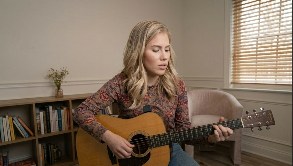 The room felt smaller than it really was, as if the air itself had leaned in to listen. Hannah Harper stood with the microphone held close, not like a performer stepping on stage, but like someone about to speak at a graveside. The light above her was soft and steady, and for a moment she didn’t move at all, only breathing, as though the song needed silence before it could exist.