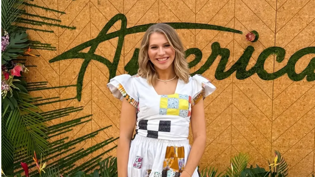 Not louder, not quieter — just still, as if everyone sensed that something fragile was about to unfold. The lights rested softly on the stage, and Hannah Harper stood there without moving, holding the microphone with both hands the way someone holds onto a thought they are not ready to let go of. For a moment, nothing happened. Then the first note of The House That Built Me drifted into the air, and the silence changed shape.
