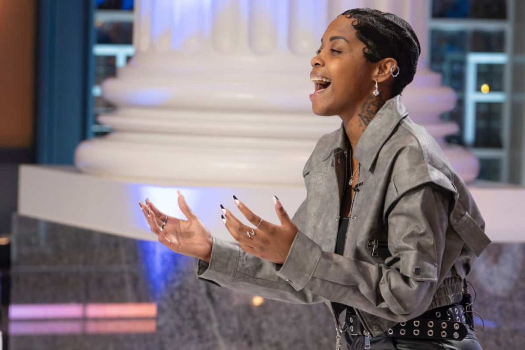 The song moved forward, but she never chased it. Each line came as though she had already lived it before the music began. Her eyes closed once, only for a second, and when they opened again, the room felt even quieter, like everyone was afraid to interrupt whatever she was holding together.